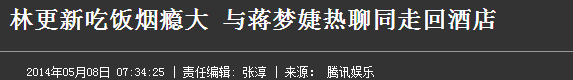 2014年7月,媒体曝光了林更新和蒋梦婕同回酒店的照片,还进了同一间屋,二人恋情疑似曝光。