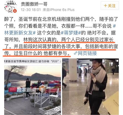而在昨天傍晚,有网友爆料圣诞节前在北京撞见林更新和蒋梦婕,两人在机场出行