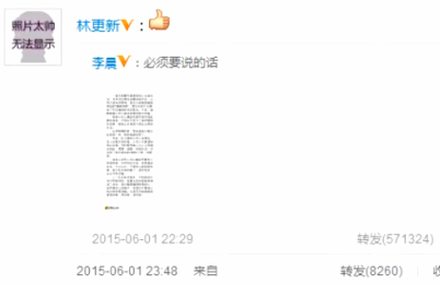 2015年6月,范冰冰李晨张馨予那场撕X大战,李晨发长文指责张馨予,林更新转发并支持