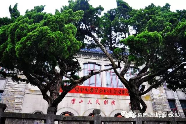 参观【蒋介石军官训练团·庐山会议旧址】蒋介石曾多次在这里向国民党军队的军官们训话,新中国成立后,这幢建筑更名为庐山人民剧院,在此召开了三次会议:于1959年(彭德怀被打倒)、1961年(发展国民经济的会议)、1970年(九届二中全会,林彪论毛主席是天才被毛识破)。