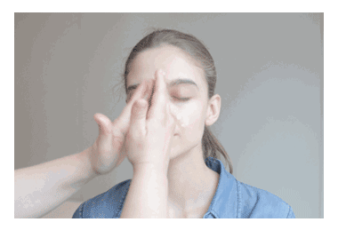 若想再加强效果,可再搭配指压方法:将食指和中指并拢,并以指腹置于眼袋部分,以边按压边向外侧滚动的方式按摩约1~2分钟。