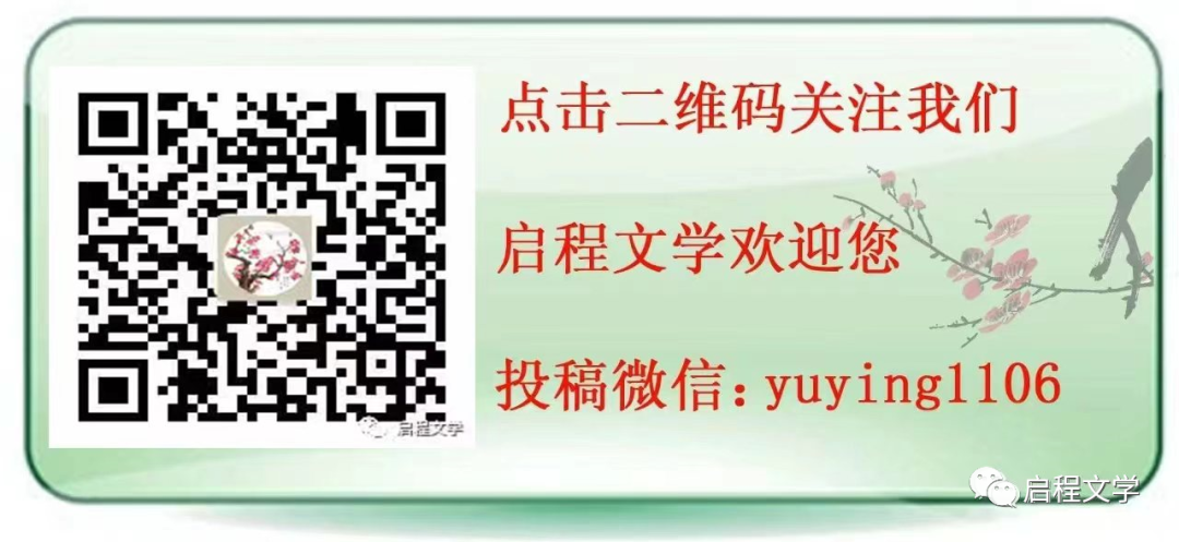 期待阅读与分享,欢迎点击“在看”留言点评!点击下面图标,识别二维码关注“启程文学”平台,可阅读精选文章,谢谢您的关注与支持!维护不易,所有打赏归平台所有。
