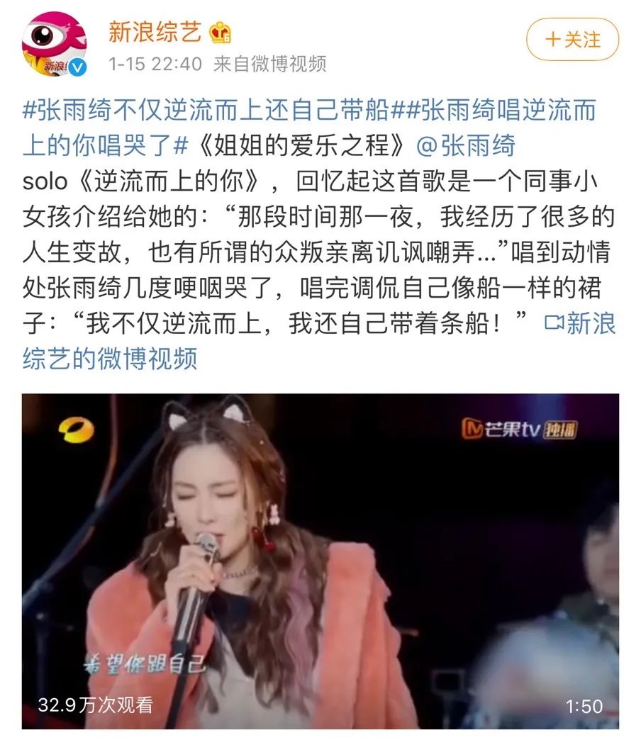 一首《逆流而上的你》,张雨绮唱到动情,哽咽走音,让台下无数人泪撒现场。