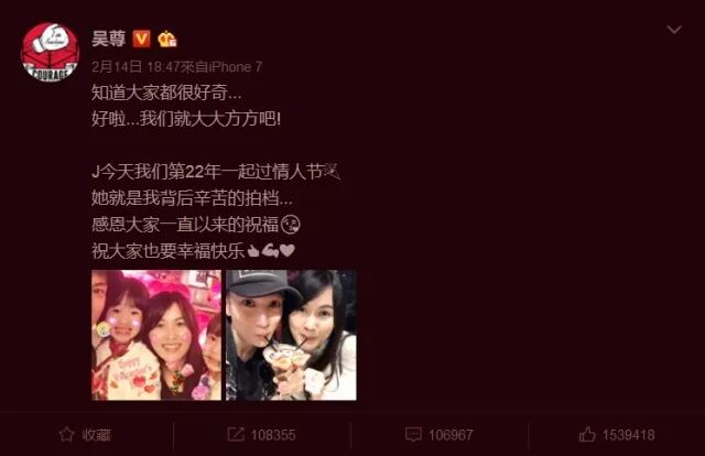他表示知道大家都很好奇,索性就大大方方的晒出照片,而这也是吴尊首次晒出老婆的正面照~
