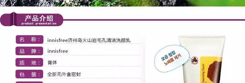 产品名称 | 火山岩毛孔毛孔清洁洁面乳 | 适用人群 | 通用 | 起泡程度 | 泡沫洁面 |