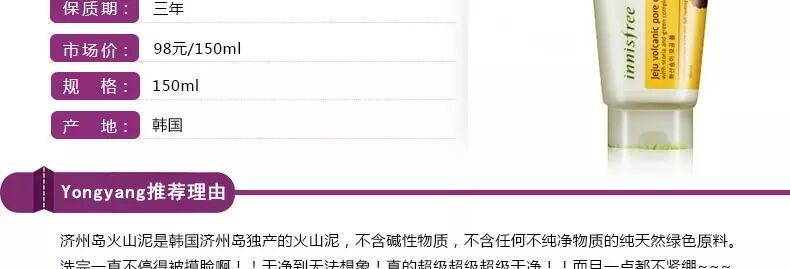 含济州岛火山泥成分,具有强力的控油能力和毛孔深层清洁能力。细腻的泡沫能够彻底清洁毛孔,让油光和脏东西统统消失,并有收缩毛孔的能力。