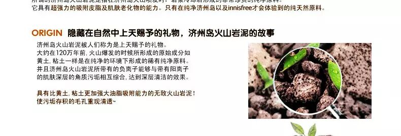 火山泥系列专门针对油性肌肤和毛孔粗大的肌肤,作用是控油、清洁,收缩毛孔以及略微的美白功效。