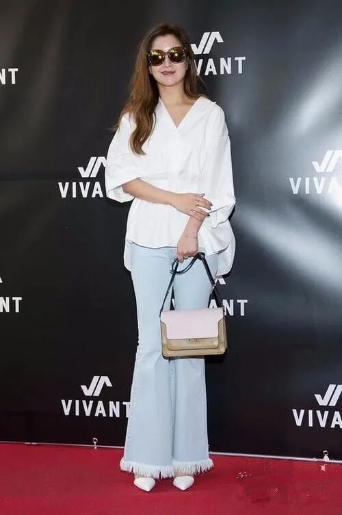 金喜善是真的很不适合穿皮裤呀,明明长裙的时候还是那么优雅迷人,但紧身皮裤完全是把缺点暴露无遗的节奏呢,大象腿的既视感也是着不住了配着黑白色的西装外套更显肩宽,脖子短,整体效果也太尴尬了一点吧。