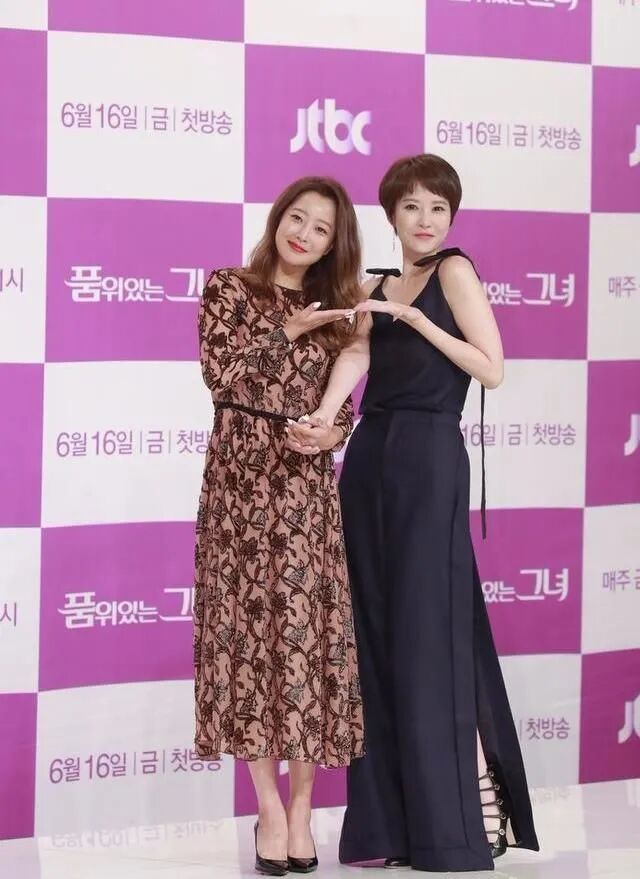 不得不说金喜善的保养也是非常好了,过了这么多年还是优雅年轻的模样,脸上白嫩简直没有半点下垂的感觉,皱纹都看不到多少呢,但这审美真的是下降太多了呢,这身长裙款式简单,颜色暗淡,完全就是大妈审美了,要不是五官长得好气质hold得住,怎么看都是会崩掉呢!