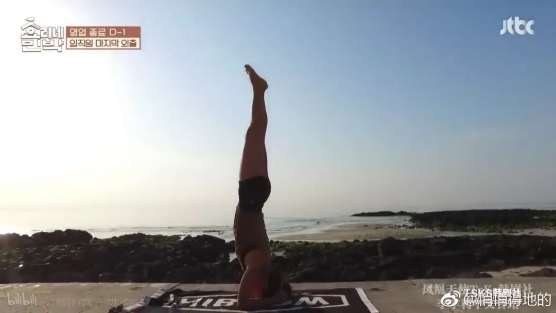 从节目透露的信息看,孝利应该是阿斯汤加瑜伽的深度爱好者。她在节目里也展示了不少瑜伽体式,比如在海边来个简单的头倒立▼