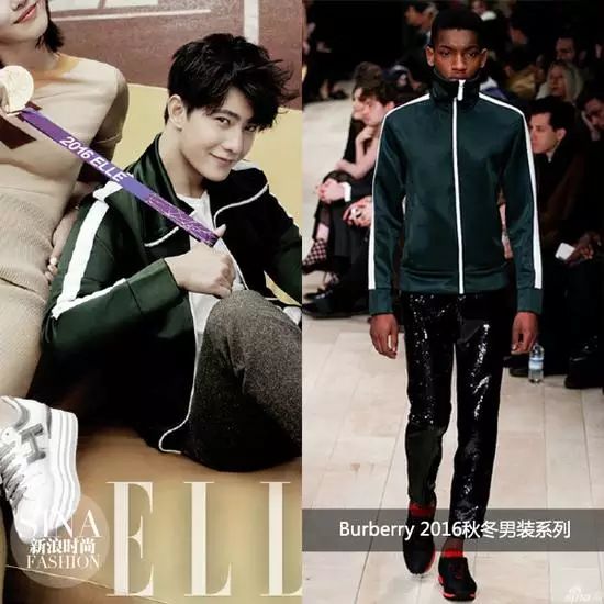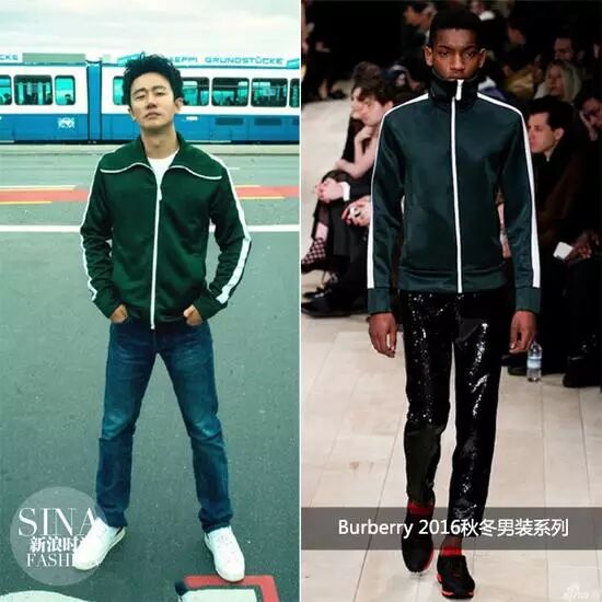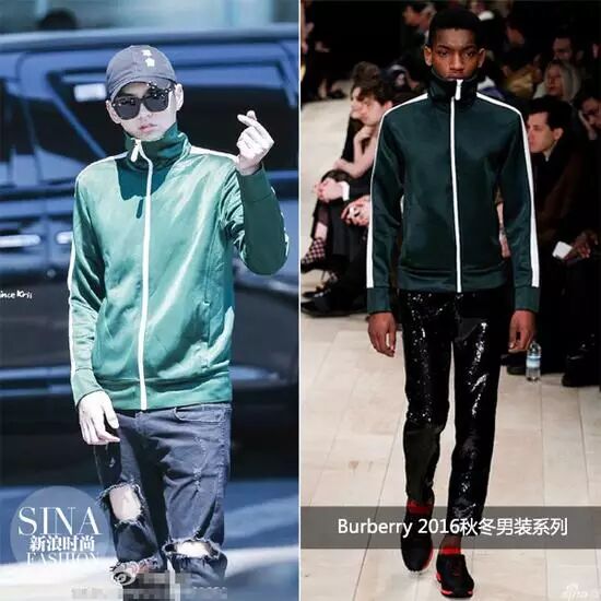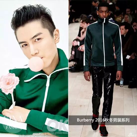 而里面这件看似最平平无奇的祖母绿运动服却在众大牌中脱颖而出,前前后后已经有5名男星穿过。最早是吴亦凡为Burberry走秀时穿了相似款,一下就注定了这件运动服不平凡的路。