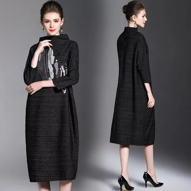 欧美针织大码连衣裙时髦大气,别致的刺绣现代感十足