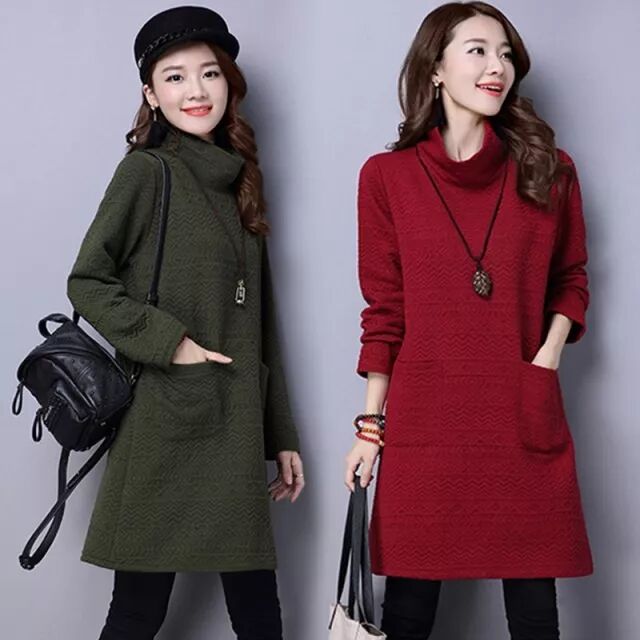 中长款套头连衣裙,立体口袋,端庄淡雅
