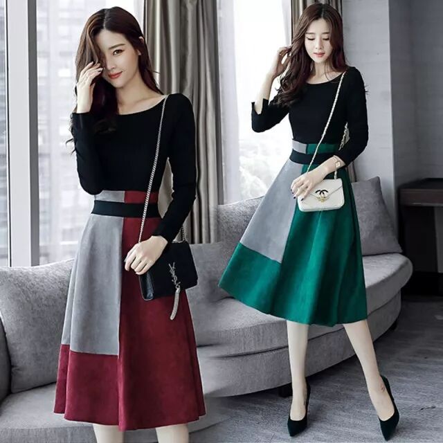 撞色拼接半裙温婉优雅,搭配纯色打底上衣尽显女性柔情