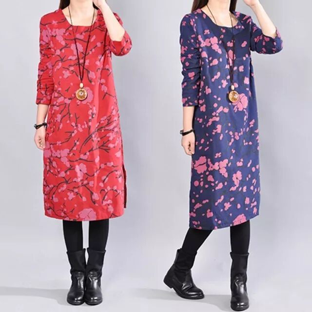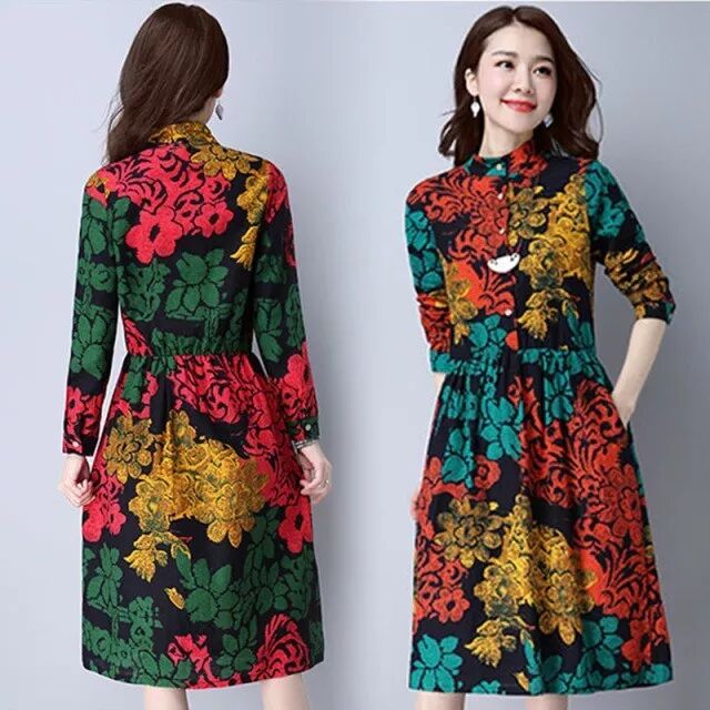 复古文艺印染连衣裙雅致大方,妍丽印花色彩带来浓浓的古典气息