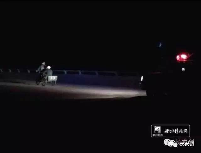 (郑士龙、杨军,衢州市公安局柯山分局石室派出所民警。2016年11月16日夜晚,在没有路灯的地段为老人照亮回家路。)