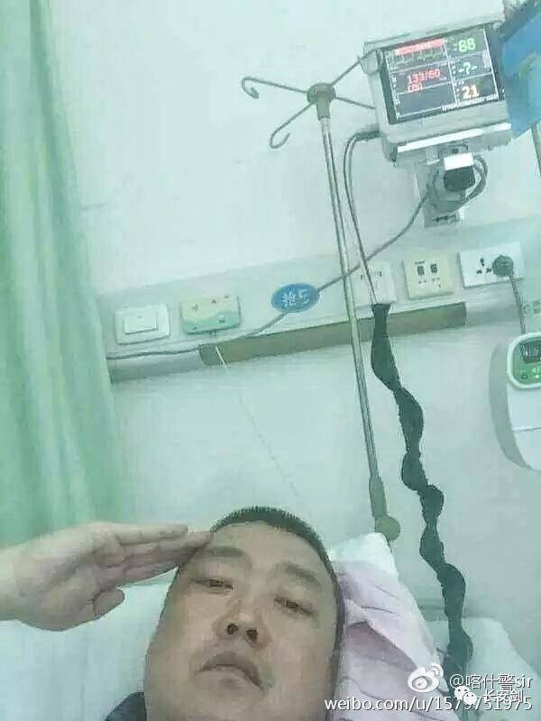 (连龙,生前系新疆喀什地区塔西南公安局交警支队支队长,2017年1月15日凌晨,因突发心脏病去世,在病床上留下生命中最后一个敬礼。)