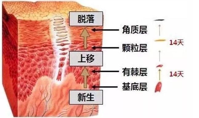 皮肤的新陈代谢,是指最下层的基底细胞产生、上移直至最后死亡脱落的过程。一般来说,健康皮肤正常的新陈代谢周期是28天。新陈代谢的快慢决定了皮肤的好坏。