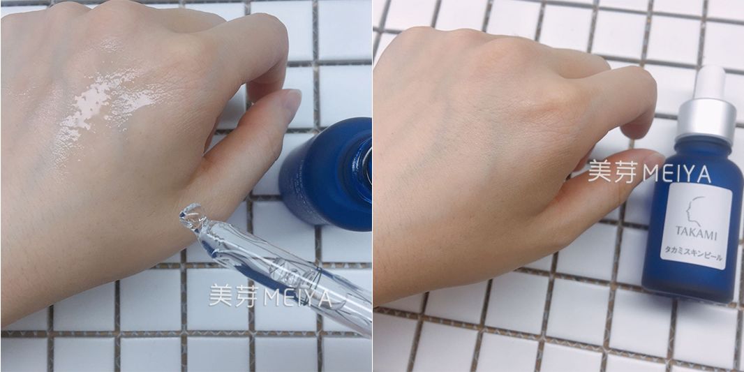 这款TAKAMI小蓝瓶质地是像水一样,流动性很好没有什么油腻感,夏天用完全没有负担,很好吸收。芽芽一般是早晚洗完脸后,先用它涂全脸,然后有闭口、痘痘的地方多涂一些,等到3分钟过后再开始后续保养。