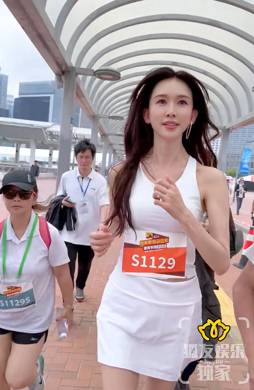 果然模特看家本领就是强,摆出任何动作都超吸睛,她跑完了2公里后就退出了赛道。