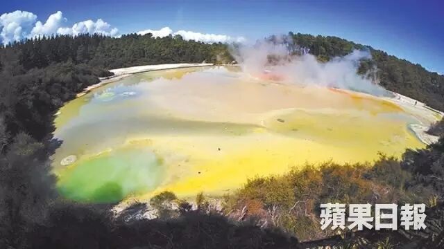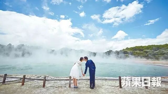 新西兰以原始景观、湖光山色闻名,自然成为海外婚纱摄影的热门之选。本年初,吴奇隆和刘诗诗亦到访此地影婚照,当中最令人瞩目的,必定是在烟雾弥漫的地热仙境、冒烟的橙色湖泊「香槟湖」前拍下的照片。香槟湖由地热爆发形成,水温高达摄氏74度,直径和深度约60米,为园内最大。由于湖内不断冒出二氧化碳,活像气泡酒,因而得名。