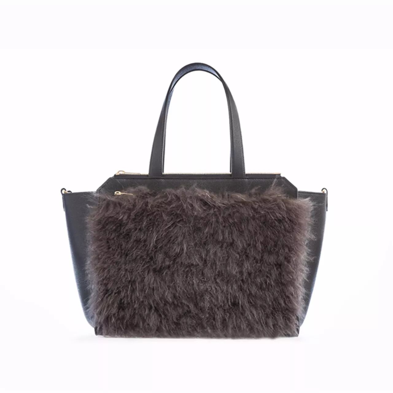这只包虽然只有两个尺寸,但是配色非常丰富,既有大气黑白灰款,也有少女彩色款,各种颜色的羊毛口袋也是非常萌~~