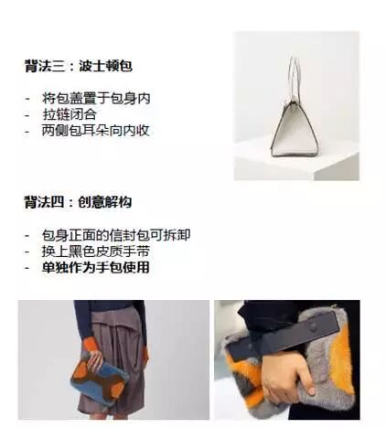 因为带毛毛的手包是需要单买的,但是本身包包还配有一个原装的手包,也是有暗扣可以装饰在包包外面的,就像这样