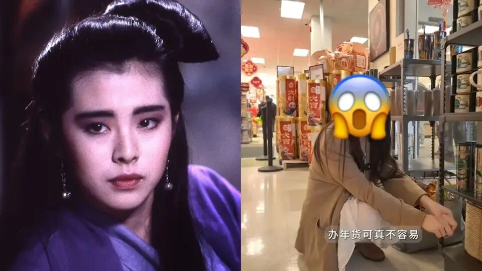王祖贤在加拿大华人超市办年货。 (王祖贤抖音影片截图)