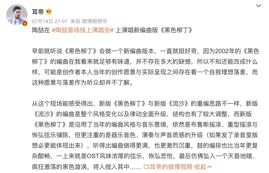 今年6月底的赛里木湖音乐节上,陶喆一曲《小镇姑娘》唱完,半是伤感半是调侃地问台下观众:「你们确定你们知道陶喆是谁吗?其实你们应该都不知道我是谁吧?!」半个月后的7月14日晚8点,陶喆的个人线上演唱会准时开场,3200多万人在线赴约,不少狂热歌迷的精神状态令人担忧:如此战绩,怕是陶喆自己也没料到吧。话说一个早已「凉了」的歌手,凭什么依旧能一呼百应?原因无他,陶喆的演唱会太硬核了。没有奢华炫目的舞台布置,没有花里胡哨的服装造型,纯靠音乐,他就能将演唱会做到顶级。《小镇姑娘》、《爱,很简单》、《流沙》、《爱我还是他》、《就是爱你》......单看曲目,每首都是炸场的怀旧牌。但仅靠吃老本,完全不是陶喆的风格,很多经典老歌他都做了全新的改编,《黑色柳丁》和《寂寞的季节》更是被歌迷评为今年的封神现场。这已经不是陶喆第一次对自己的经典曲目下狠手了。2003年的Soul Power演唱会上,陶喆将所有歌曲都重新编曲,整场听下来,律动炫到极致,在巅峰时期的嗓音和舞台表现力的加持下,这场演唱会足以载入华语乐坛史册。直到今天,与此相关的视频都是B站上的圈粉神器,哪怕在凌晨三四点打开,都不乏一些「病友」同台嗨唱。2003年,距今很久了。彼时的他34岁,风华正茂;如今的他54岁,年过半百。从时间的角度看这20年,谁都得深夜抹泪,但从音乐的角度,却是不同。当如今的陶喆再次唱起熟悉的旋律,那悸动的感觉,似是在昨天而已。01如果用一个词来形容陶喆对于音乐的态度,那就是:玩。玩得认真,玩得纯粹。早在出道之前,他就以「史蒂芬汪德、史努比」这些化名做了Hip-hop、New Jack Swing等正统黑人音乐。玩音乐的同时,他在美国洛杉矶打着各种零工,还在警察局当了一年半的警察,体会过跟莽汉贴身肉搏的滋味。陶喆打工,并非因为穷,纯属锻炼自个儿。事实上,他的家境非常优渥,父亲陶大伟是台湾著名歌手,母亲王复蓉是京剧名伶,15岁那年,他就跟随着父母移民美国。因为父亲是大明星,小时候哪怕跟父亲去游乐场,都会被各种粉丝包围,所以陶喆自小对成为明星这件事就犯怵。在美国念大学时,他选择了主修心理学,辅修电影专业,跟音乐没多大关系。但即便如此,他的音乐天分还是挡都挡不住,用他的话说,父母对他的熏陶,就跟熏鸡似的,早就熏透了。上世纪90年代初,打口碟成为了先锋音乐迷们苦苦寻求的宝贝,而此时的陶喆,已经坐拥数千张正版CD,音乐品位绝非普通人能比。1993年,陶喆在洛杉矶一家乐器行打工时,与前来买设备的王治平相遇,此人是台湾大佬级的音乐制作人,女儿王若琳光凭一首《I love you》就能在MP3时代大杀四方。第一次听到陶喆做着玩玩的音乐,王治平就被击中了:「这小孩真的是个天才。」在王治平的鼓励下,陶喆放弃了电影,加入了他的幕后团队,成为了一名音乐制作人。刚出道的新人,合作对象便是杜德伟、郑中基等大牌歌手,而他的实力也的确不容小觑。1995年,陶喆与王治平携手为陈淑桦打造了一张突破了她以往风格的专辑《淑桦盛开》,其中的主打歌《说你爱我》一股浓浓的陶喆味儿。这张唱片大胆尝试了当时还并不流行的R&B,张信哲听完后喜欢得不行,当即飞去美国向陶喆邀歌。陶喆不仅写歌厉害,唱歌也很牛,声线独特,真假音、转音和滑音更是无人能及。在幕后摸爬滚打了几年后,陶喆想尝试从幕后走向舞台,彼时的台湾乐坛,主流的依旧是甜糯的芭乐歌,陶喆这样的尚无处安放,五大唱片公司挨个儿聊过,没有一家能接受他的音乐理念。于是,他只能与刚成立不久的侠客唱片签约,侠客的老板许安进说「侠客」其实就是为了陶喆而成立的公司,而陶喆在签约时还附加了一个条件,那就是不允许干预他的创作。1997年,陶喆的首张个人专辑《David Tao》问世,整个台湾乐坛体会到了什么叫做降维打击。(连专辑封面都很洋气)风格纯正又前卫的R&B,在一众老式曲调前,显得尤为炸耳。从第一主打的《飞机场的 10 点半》到《流沙》再到《爱,很简单》,专辑中的15首歌,没有一首划水,全是精品的存在。其中的《望春风》更是被周杰伦吹了20年,称其是「中国风和 R&B 结合得最好的一首歌」。《David Tao》的横空出世,让陶喆拿下了台湾金曲奖的「最佳新人奖、最佳唱片制作人奖」,成绩不得不让人嫉妒。而陶喆,却赢得十分轻松。整张专辑的制作过程,他就像是带着一帮朋友去美国玩了一圈,录音室就在陶喆的家里,玩嗨了脱得只剩内裤,对着麦尽情吼。所谓天才,大概就是这么玩儿的吧。02音乐圈的教父有很多,但公认的,数数也就那么几个。所谓教父,除了开宗立派的意义之外,他还得达到后人难以企及的高度,正所谓「开局天花板」。从这个层面上来讲,陶喆被封为「华语R&B教父」并不为过。陶喆的老粉都知道,他的作品极具超前性,音乐性上如此,意义性上也如此。至今听来也丝毫不觉得过时的《爱,很简单》,你相信是30年前的1993年就创作完成的么?《望春风》里,他抨击封建礼教对女性生育的绑架,为女性的自由呐喊,「自己买花自己戴,爱恨多自在」的歌词,你相信是出自26年前的一首歌里的么?跟陶喆合作多年的幕后人员说:「他看上去很礼貌,其实骨子里很暴力,一直想要革命。」而他革命的武器,就是音乐,正如他喜欢的鲍勃·迪伦和Bealtes那样。2002年,陶喆推出第三张专辑《黑色柳丁》,封面由一只黑色的眼睛和小小的橙色构