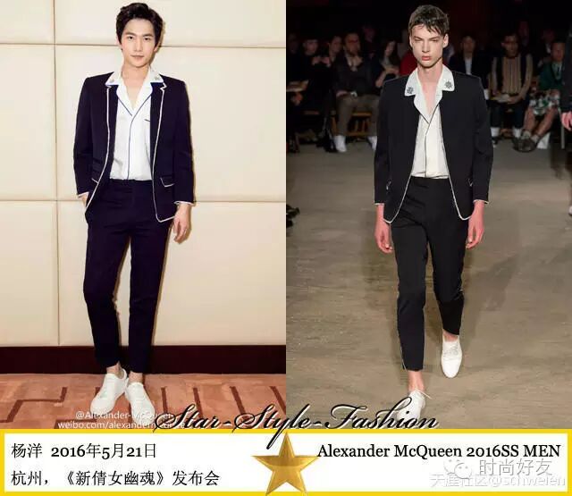 大概是因为杨洋长得太乖太正了,就像三好学生一样,所以这些需要一些反派气质的衣服杨洋就hold不住。再一个可能是因为杨洋当过兵,身材太挺拔了,穿西服、正装很占便宜,但是潮服就。。