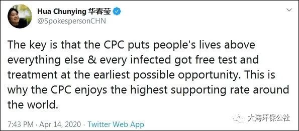 “关键是中国共产党把人民的生命放在第一位,每个感染者都能尽早得到免费的检查和治疗。这就是中国共产党享有全世界最高支持率的原因。”