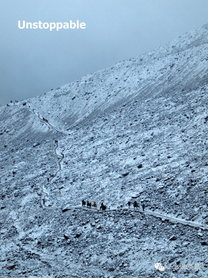 凌晨4点,海拔5000+,天寒地冻。走一步要喘十口气,literally“心都要碎了”。但不能后退,只能前进。