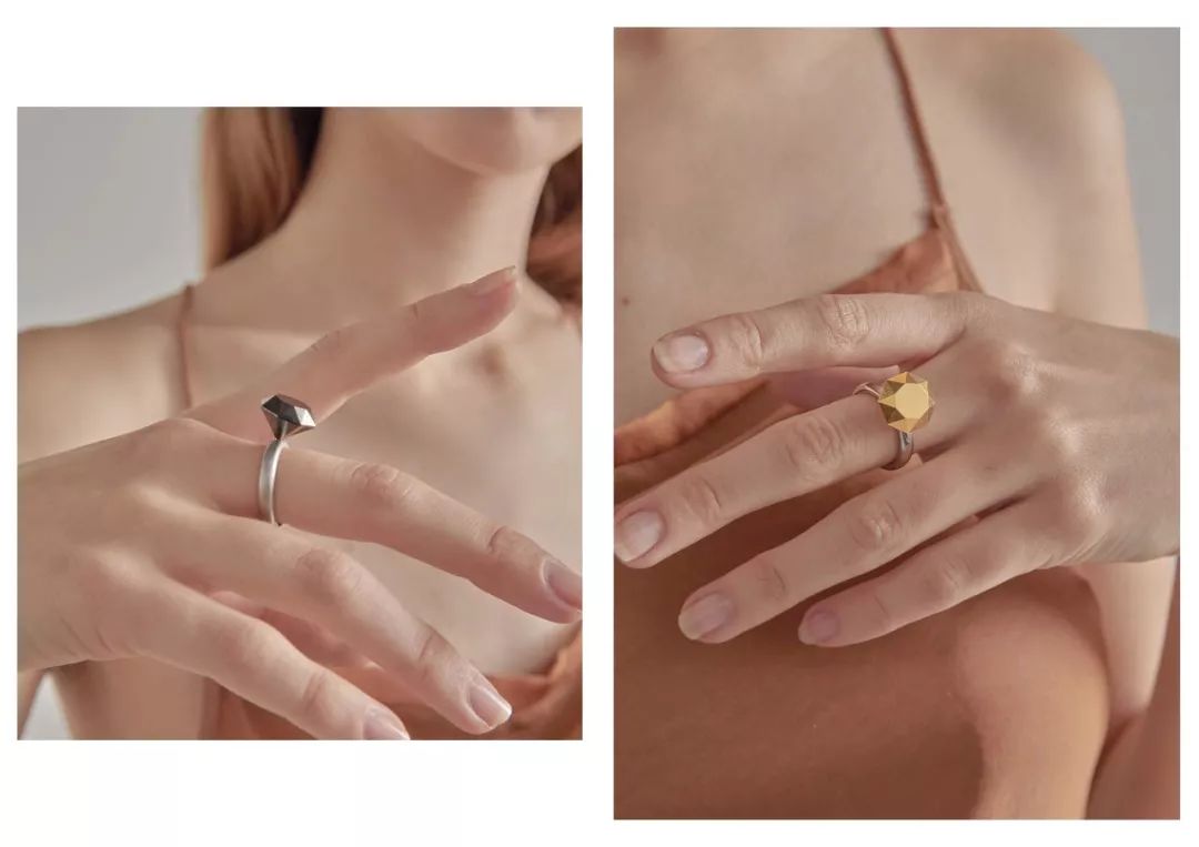 JEWELXING 2018 AW系列的灵感来源于设计师好友的一枚传统钻石戒指。这枚用六爪坚固镶嵌的钻石戒指在某一天不见了上面的钻石。既然如此坚固的镶嵌方式都不能保证万无一失,那为何不尝试用反向思维去设计?