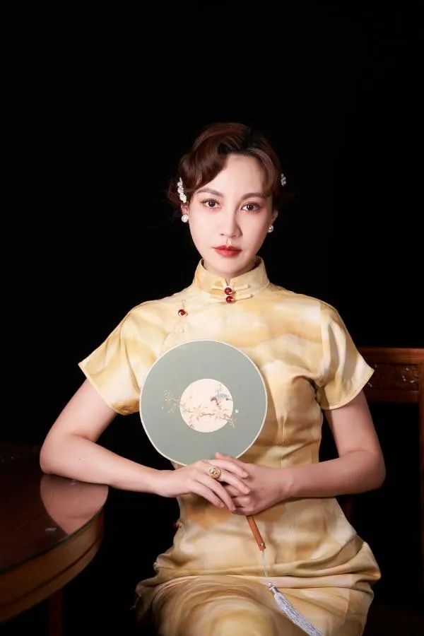 淡黄色旗袍相比上面那款明黄色旗袍要低调许多,给人更多的是一种优雅知性的味道。同时,相比高亮度和高饱和度的明黄色,淡黄色更不容易对肤色造型影响,就算是皮肤稍有暗黄也能轻松驾驭。