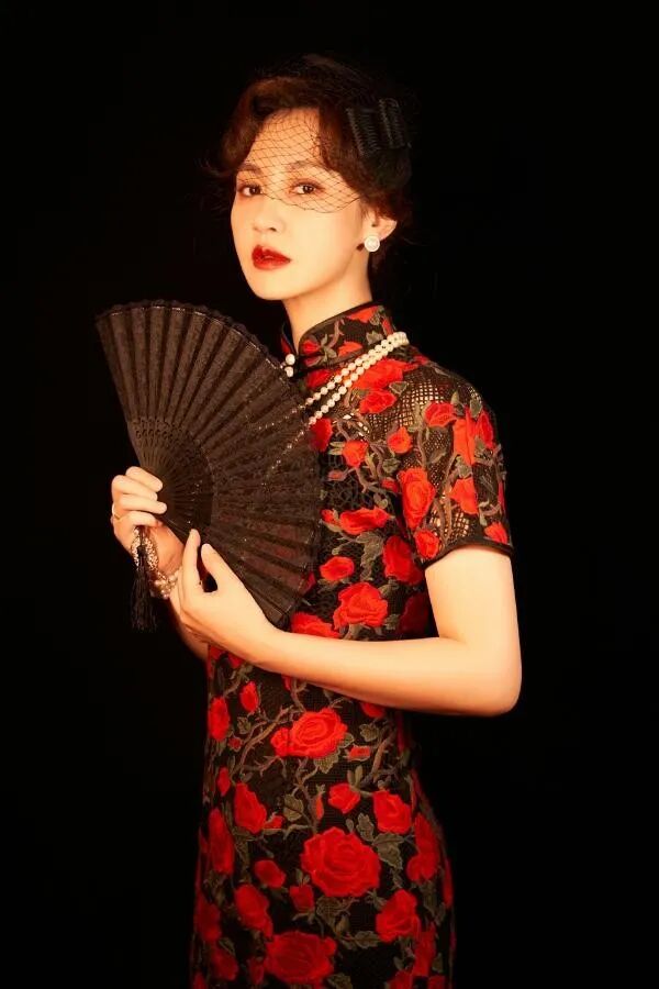 全身上下铺满红玫瑰的旗袍不仅瞬间能够给人一种“富太太”的感觉,而且充满万种风情,高调但是并不夸张,很好的衬托了个人的肤色,提升了整个人的气色。颈部的珍珠项链一下子提升了服装的质感与高贵感,使旗袍造型看起来更加精致。但是这种修身旗袍不单单考验身材,而且对气质的要求也很高!