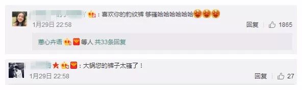 网友在下面评论说,豹纹裤简直太骚了!瞬间赞同之声一偏!