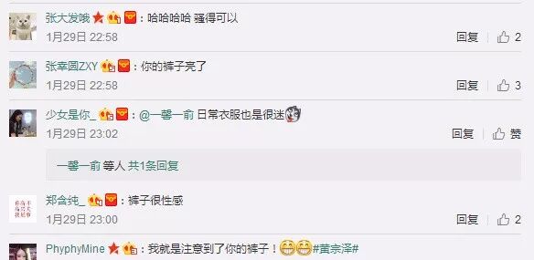 纷纷大喊:骚的可以!裤子亮了!其中一位网友说:日常衣服也是很迷~嗯,这句话是有道理的,因为如果复盘一下黄宗泽日常的私服搭配,你会发现他还真是衣不惊人死不休的“惯犯”哈哈哈哈哈。