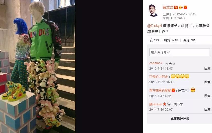 曾经,黄宗泽貌似很心水一款某运动品牌的可爱长裤,跟网友分享说非常可爱,言下之意是很喜欢很喜欢滴。