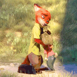 原来精明的狐狸也不是铜墙铁壁。因为小时候被食草动物打击,所以放弃了自己的梦想,和小兔子说出真心话的狐尼克此刻看起来也是落寞、无助的。这一招对于乐于助人、善良的小警官的杀伤力简直是致命的。适当示弱才能激起妹子的保护欲啊。