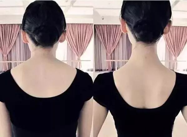 探颈会显得人弯腰驼背没气质,但并不会让人显得胖,但是斜方肌发达却会显得肩部厚实,整个人“威武雄壮“,自带胖感。而完美肩颈线应该是这样的▼