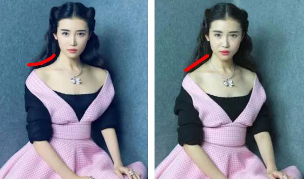 对比还不够明显?那就看看这张豆瓣母神张辛苑有名的p图前后对比图吧,你可以发现右图这种直溜向下的肩颈线显得人非常多壮实。▼