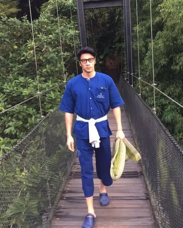 就连穿工作服穿拖鞋,都是一个大写的帅! ▼