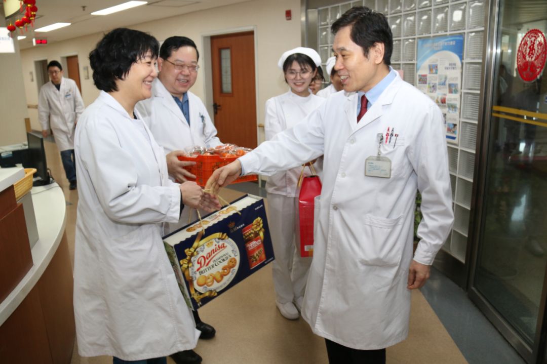 农历腊月二十八清晨,由中国医学科学院肿瘤医院院长、党委书记赫捷带队,石远凯副院长、付凤环副书记、王艾副院长、蔡建强副院长、马建辉院长助理陪同,共同慰问了医院节日值班人员,并向全体医务人员致以诚挚问候和新春祝福。“过年好!大家辛苦了,给你们拜年了!”“大家过节注意身体,多休息”……殷殷话语,寄托着院长对一线职工的深情厚爱。