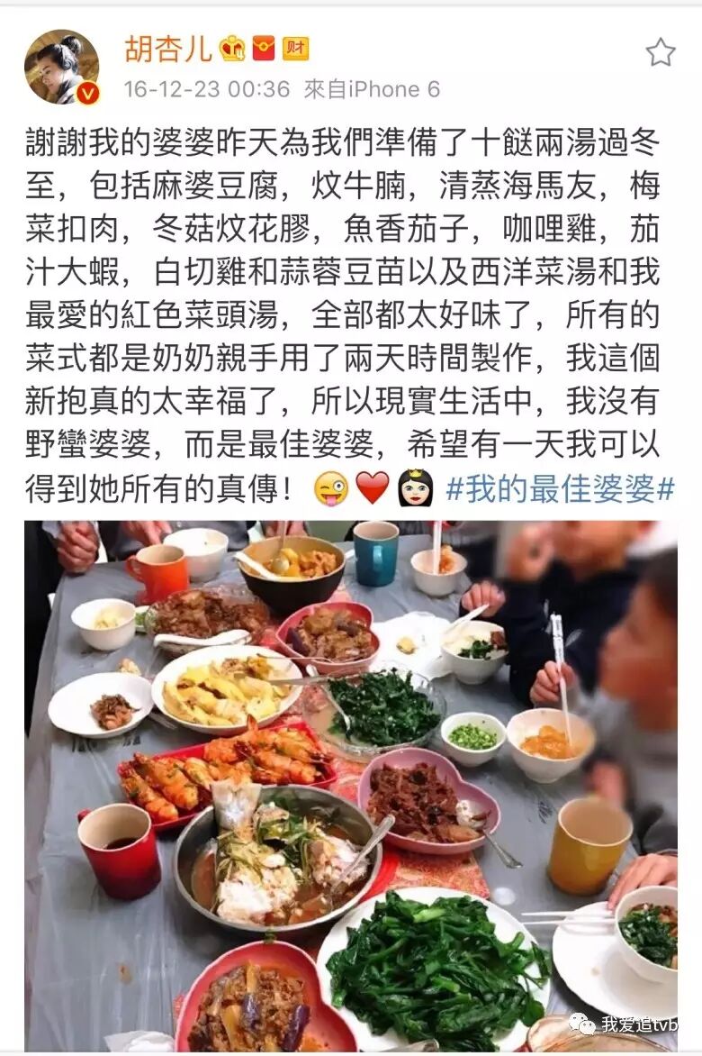 胡杏儿经常内地香港两边飞,最近她就与内地女星孙俪合作拍摄内地剧集,所以她非常珍惜与家人见面的机会。向来钟意煮菜的杏儿,因为有奶奶这位厨艺高手,自然好口福。