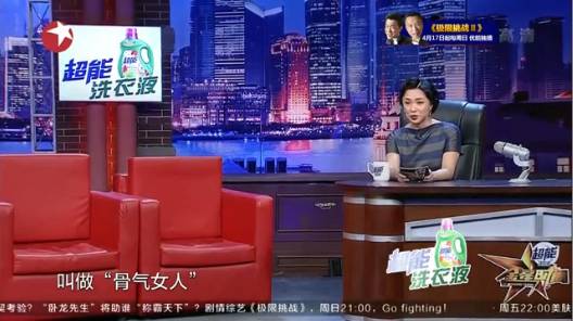 在刚刚播出的《金星秀》中,金星评价她为“骨气女人”。“因为她当爱情来了,可以专心相夫教子,丈夫事业不顺了,马上又能重返江湖在争抢支持丈夫,活的特别有骨气”。