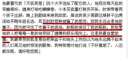 当中有这样的一段话“我守住了做妻子的底线,称职的保住了我的职称”