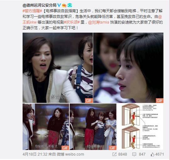 男友力分分钟爆棚。她在电梯里的冷静沉着面对电梯事故的冷静自救的过程,甚至被不少地方的公安局认证官微当成了电梯事故自救教程。
