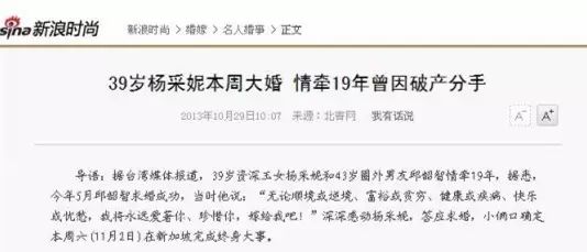 2010年,杨采妮重遇邱韶智,2011年复合,2013年结婚,很多人大跌眼镜:“玉女”始终忘不了“渣男”。