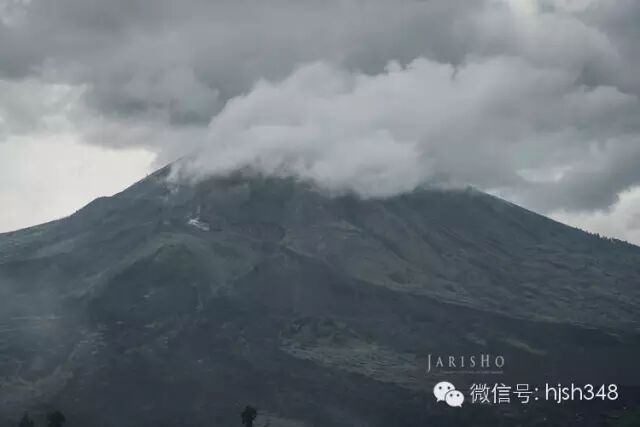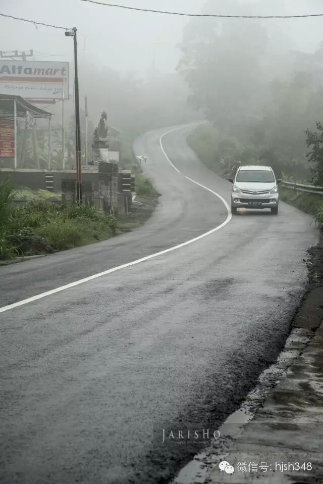 吃过早餐后就开车去京打马尼火山。火山在库塔以北70公里左右,但是有些是山路,弯弯曲曲的加上上下坡、两车道很窄,所以开车去用了两小时。