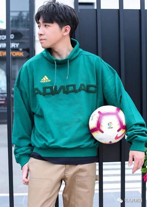 俞灏明在平时的街拍照也是很有看点的,俞灏明穿着一件青色的字母印花带帽卫衣配上一条浅褐色的长裤,这一身打扮也是显得俞灏明非常的时髦,俞灏明手上拿着足球的样子是不是很有运动的气息呢?